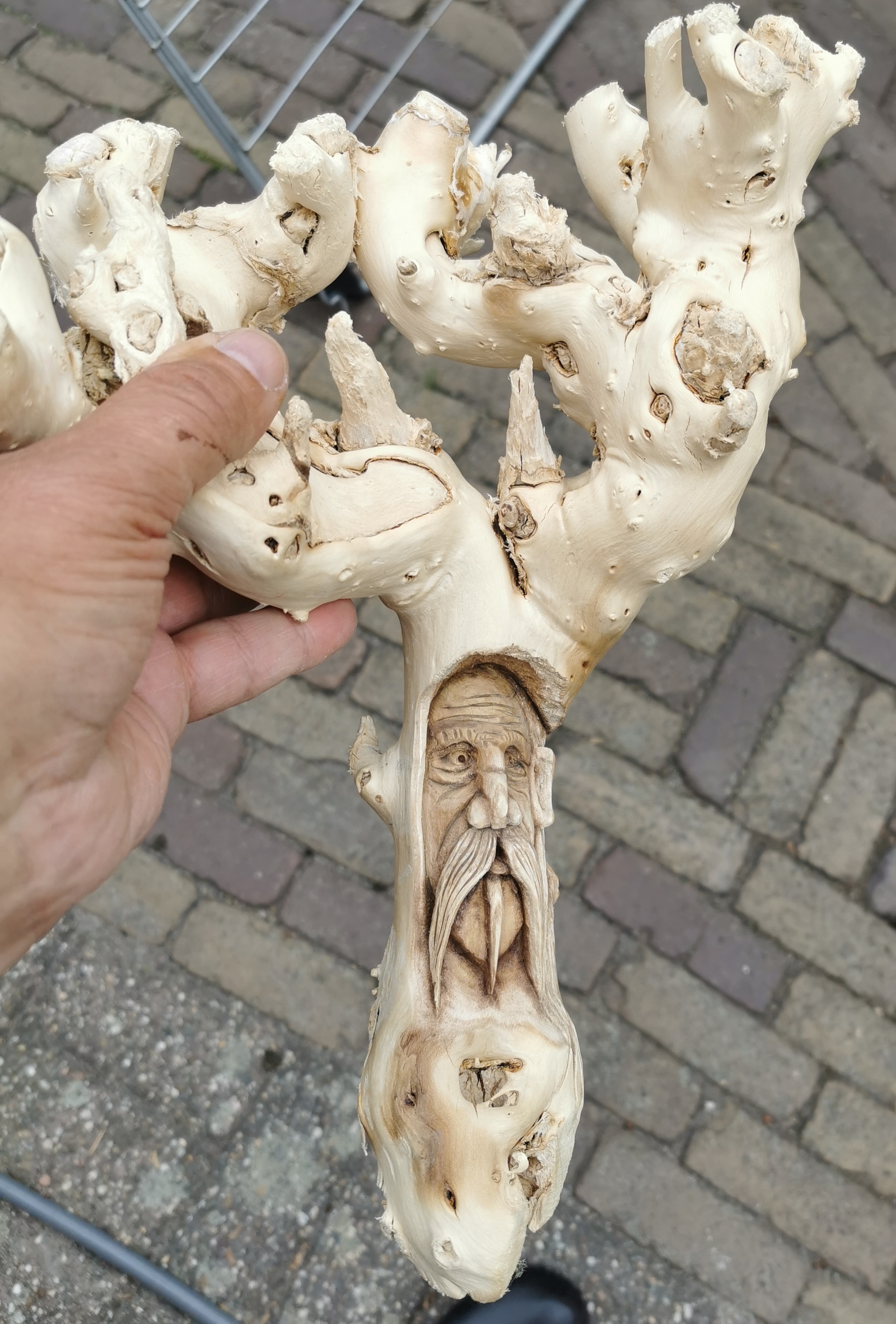 Handmatig heb ik Alva met een z.g. woodcarving mesje gesneden uit deze mooie tak.