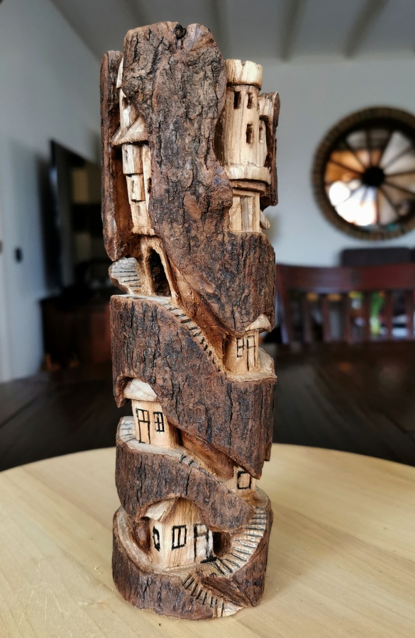 Uit een tak heb ik dit dorpje voor de minimensjes gesneden.