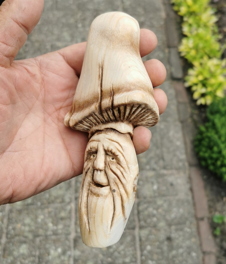 Handmatig heb ik met z.g. woodcarving mesjes deze paddestoel gesneden uit hout.
