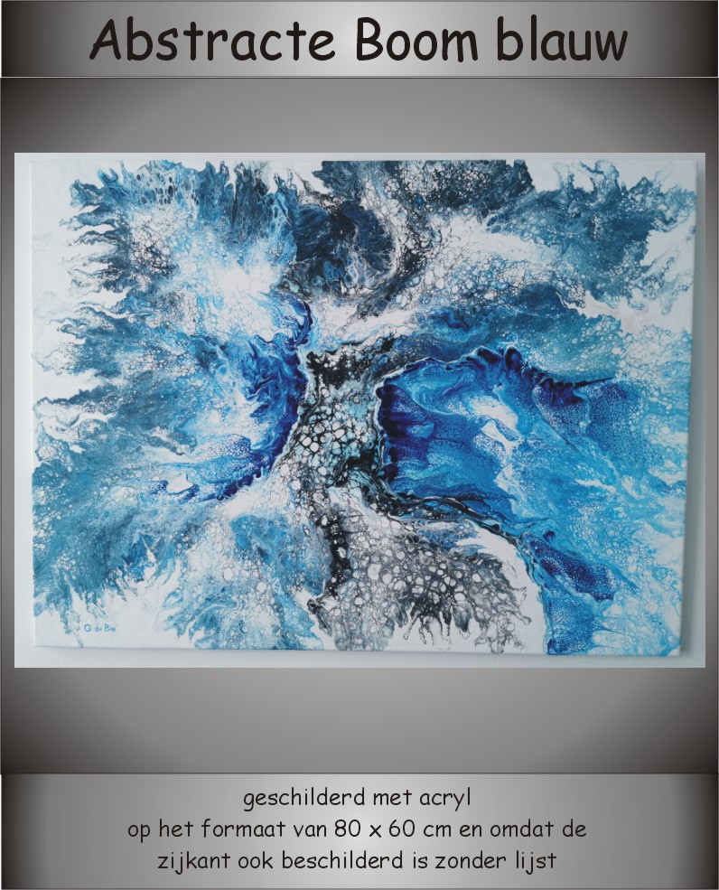 vol beweging. Blauwtinten en wit vloeien in elkaar als water en lucht, terwijl